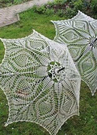 Висилаю після оплати на карту Приват Шикарная дабротная вещь -зонт-трость связанный крючком. Зонт – трость полуавтомат. Размер – 80 см. Диаметр – 105 см. Ручка деревянная полукруглая. В наличии белый и айвори, шампань .Это все оттенки белого-в раскрытом виде зонта-еле отличаются Зонтик прекрасно подходит для love-story и свадебных фотосесии, а также как дополнение к образам в винтажном, шебби-шик, прованс стилях.Також для оформлення інтер"єрів....та весільних салонів... Узор и ручка только такая.Вязка фактурная