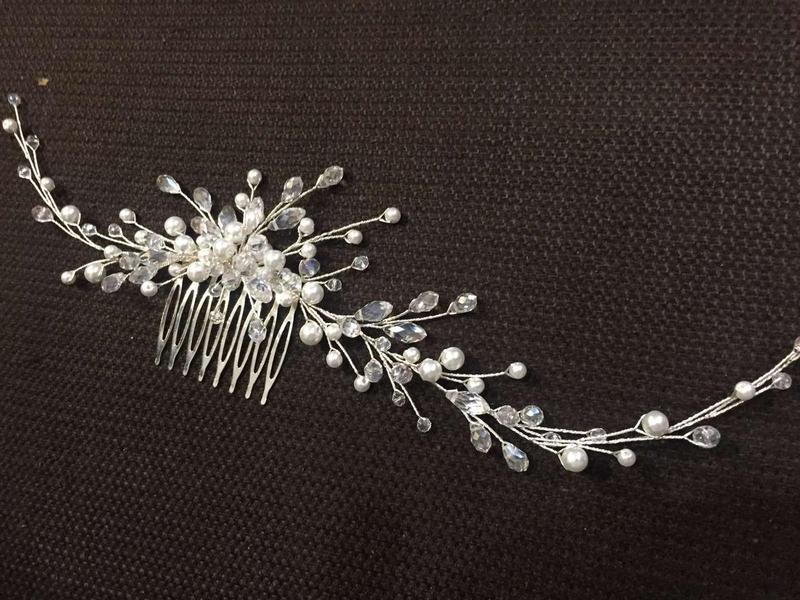 Гребінець ручної роботи з Чеського скелярусу та стразів, річкових перлів, щокажний елемент прокручений на дріт.Дуже вишукано, ніжно та дорого виглядає на волоссі. Зроблено з любов'ю й позитивом)