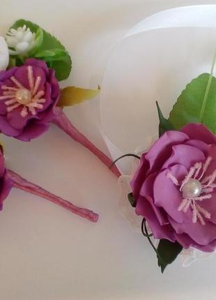 Бутоньєрки з фоамирана,мережива і атласних стрічок.