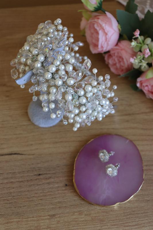 Широкий ободок, виготовлений з керамічних і кришталевих бусинок. Прикраса ідеально підійде як до локонів, так і до високого пучка. В наявності ✔️ За детальною інформацією звертайтесь в повідомлення🤗