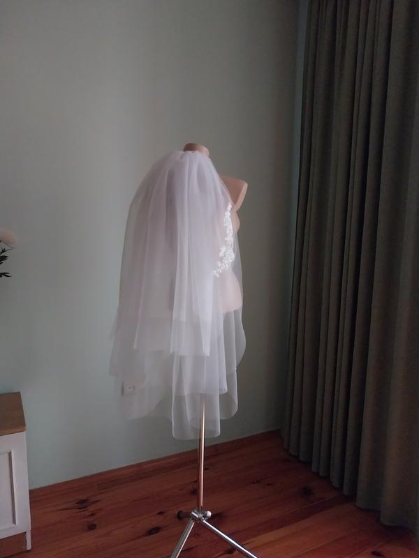 Фата для нареченої, колір білий, пишна, 4 слої, прикрашена кришталем та мереживом з вишивкою. Нова. Висока якість. Довжина 98 см