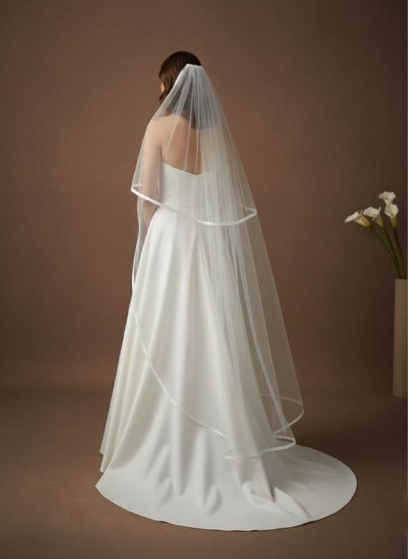 Весільна фата двошарова з перекидом на обличчя Ця вишукана фата стане ідеальним завершенням образу нареченої. Вона має два шари: • 1-й шар довжиною 80 см – зручний для перекиду на обличчя під час церемонії; • 2-й шар довжиною 150 см – ніжно спадає вниз, створюючи легкий та романтичний силует. Фата №12 🔹 Ширина фати – 150 см 🔹 Колір – Айворі 🔹 Оздоблена атласною стрічкою шириною 1,5 см Фата пасує як до класичних весільних суконь, так і до мінімалістичних моделей, додаючи вишуканості та завершеності образу.