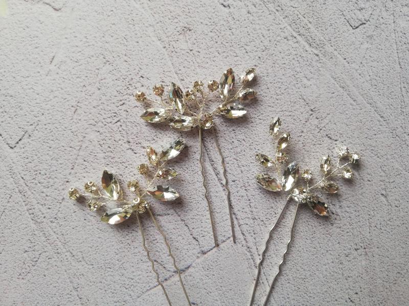 У наборі 3 шпильки з камінцями Гарно тримаються у волоссі В наявності багато весільних прикрас у волосся