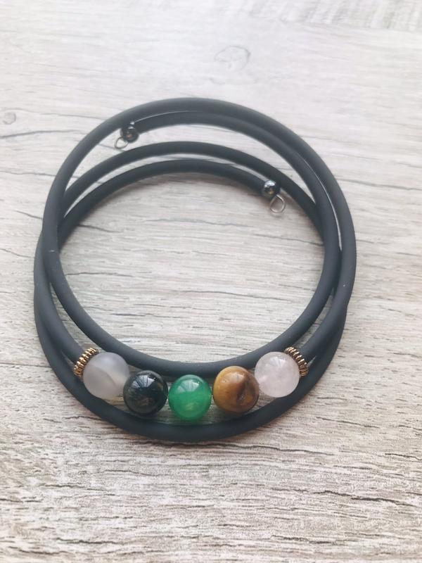 Каучуковий Браслет ДІВА Матеріал: рожевий кварц, тигрове око, нефрит, Агат, соколине око діаметр намистини 8 мм