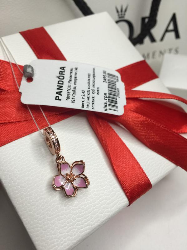 Серебряный шарм пандора 780667c01 цветение вишни розовый цветок цветочек розовая розовое з...