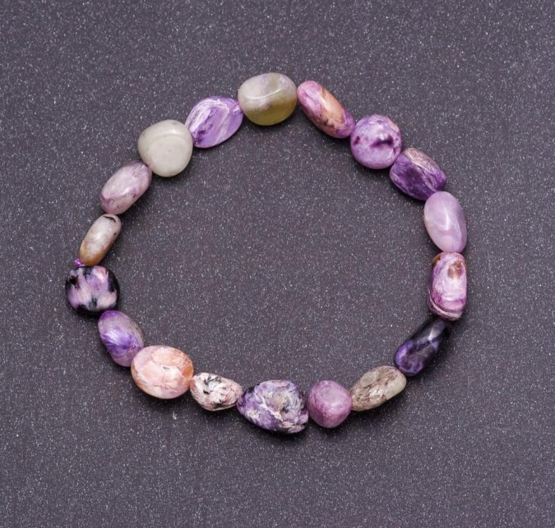 Браслет з натурального каменю чароїт галтовка d-8 мм (+-) на резинці обхват 18см