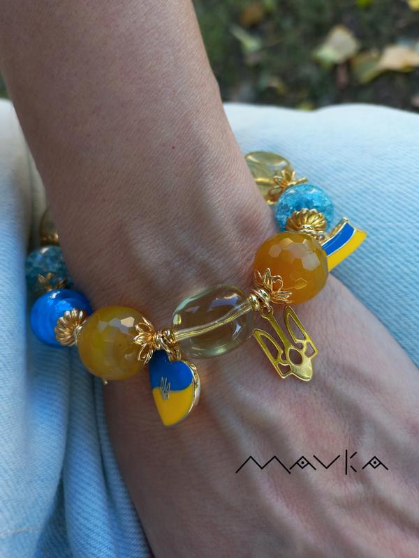 Патріотичний браслет набір сет мурано агат кварц цитрин
