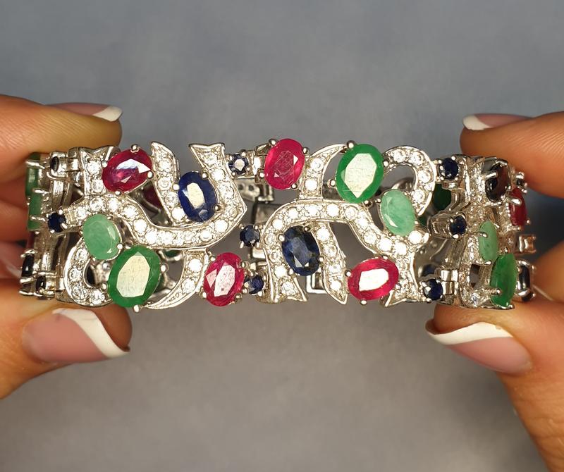 Браслет срібний з смарагдом, рубіном і сапфіром 46,4 г