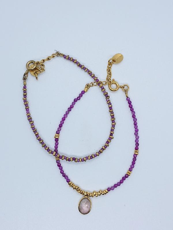Браслет une a une jaipur xl аметист натуральні камінці та позолота