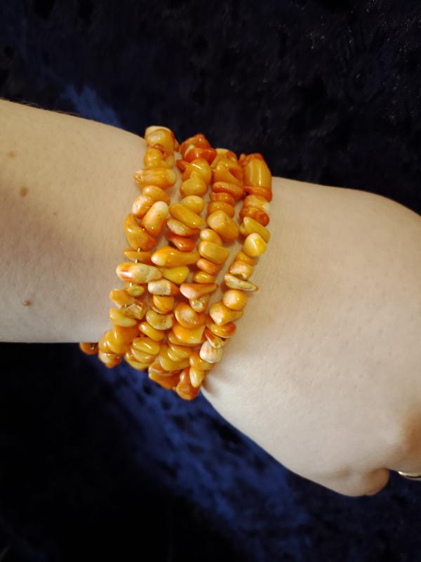 Браслет ручної роботи, матеріал корал оранжевого кольору , багатошаровий.