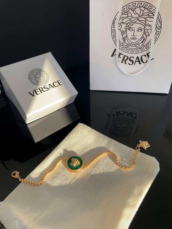 Браслет Версаче Зелений малахіт і матове золото. Особливе, м'язове плетіння браслета