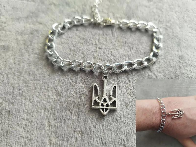 Браслет"Тризуб" Матеріал - нювелірна сталь довжина регулюється Доставка: Укрпошта, Нова пошта. Якщо Ви обрали доставку Новою поштою, оплачуєте лише вартість товару/товарів, вартість доставки оплачуєте самостійно при отриманні (це складе 60 грн). Якщо доставка Укрпоштою для Вас зручніша - вартість лота / лотів + 25 грн (в межах Тернопільської обл. 15грн). Оплатити можна в: будь-якому відділенні Приватбанку (ощадбанку) через касу, Термінал або Приват24 (Ощад24). Відправка на наступний день після оплати крім неділі та святкових днів. Можна комбінувати лоти (доставку) - за вашим бажанням при покупці декількох товарів (лотів) доставку можна комбінувати, тобто всі лоти відправити однією посилкою. Приємних покупок!
