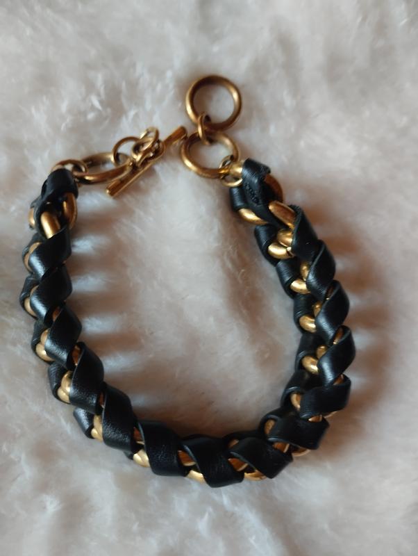 Біжутерія. Не ношу під золото прикраси, тому продаю. Браслет жовтого кольору в дуже хорошому стані. Є потертості, скоріш зміна кольору , але разом переплетом із шкіряної стрічки не помітно. Підвіска складається з ланцюжка на одній стороні, а на другій вшита вставка, але мають не шкіра, а замінник(хоча, коли купувала, писало що шкіра) В ідеальному стані. Ланцюжок 200 Разом віддам за 250 Заміри надам