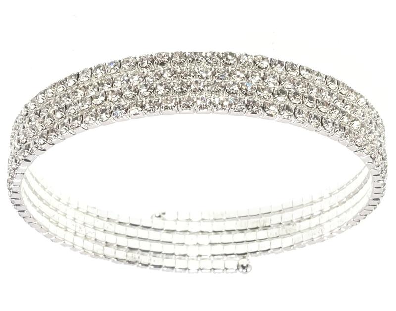 Браслет пружина Граненые Кристаллы в Пять Рядів Жіночий браслет виглядає дуже ефектно. Браслет зручний тим, що підходить на будь-яку товщину руки!