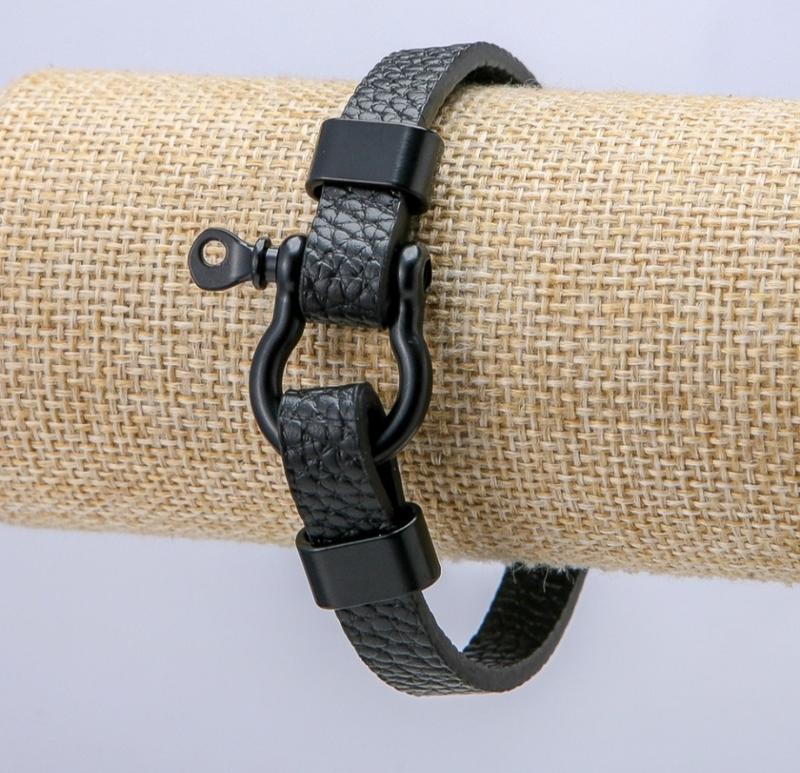 Браслет-ремінь чоловічий чорна еко-шкіра s-9.5 мм+- l-22см