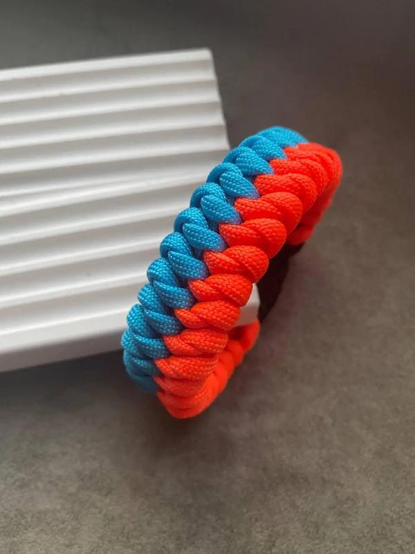 Браслет з паракорду — це аксесуар ручної роботи, виготовлений з паракорду, який є міцним і зносостійким матеріалом. Паракордові браслети є стильним способом показати свою індивідуальність, вони можуть носитися як чоловіками, так і жінками. ⚡⚡⚡ВАЖЛИВО: Збільшення розміру браслета для комфортного носіння ми прораховуємо самі, з цієї причини, будь ласка, зробіть точні виміри. ⚡⚡⚡Кольори виробу можна вибрати на фото з таблицею кольорів паракорду у зображеннях. Вкажіть номер кольору та розмір зап'ястя у коментарі до замовлення. Матеріал браслета: паракорд 550 (4мм). Матеріал застібки: пластик. Ширина браслета: 2.5см. Розмір: під замовлення (14-23см). Виробництво: 100% ручне плетіння, Україна.⠀ Доставка: Укр.пошта, Нова пошта, Justin, Meest.