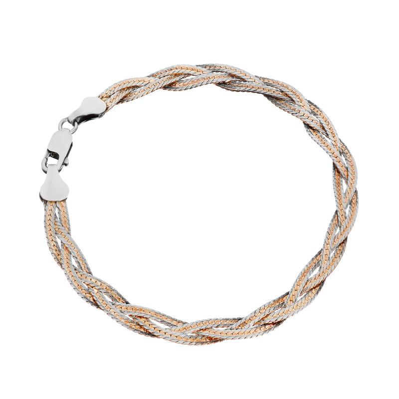 Жіночий позолочений браслет з плетінням ''коса''. Прикраса виконана зі срібла 925 проби, покрита золотом 585 проби 4 мкрн, яка не буде стиратися при повсякденному носінні.