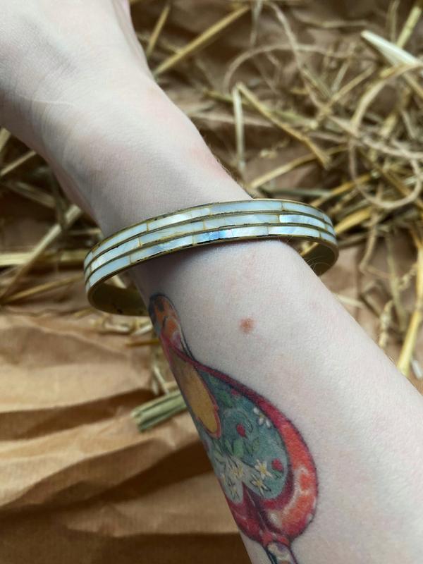 Вінтажний браслет з перламутровими вставками 🫧 Дуже гарно переливається, стильно підкреслить образ - цікава автентична річ у колекцію ❤️