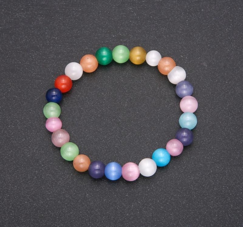 Браслет кошачий глаз ассорти цветов гладкий шарик d-8(+-)мм l- l-18см