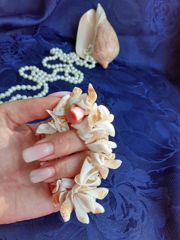 Стильное яркое украшение, которое не только дополнит образ, но и внесёт неповторимую "изюминку"! 🐚💦 Выполнен из натуральных органических материалов - крупных ракушек! Украшения из ракушек – это история длиной почти в двадцать тысяч лет. Именно такие раковины, подпиленные, просверленные или нанизанные, находят сегодня археологи. Красота и совершенство, удивительные расцветки ракушек, созданных подводным миром природы, будто предназначались для тех материалов, которые использовались человеком для украшений с незапамятных времён! Данные бусины собраны на тонкие резиночки, имеют два отверстия, нетонированы, естественно перламутрово-пастельных оттенков и сочных переливов, делая тем самым украшение не только совершенным, но и индивидуальным, неповторимым! Ширина браслета - 35 мм. Состояние отличное, без сколов и прочих дефектов, но резиночки растянуты! Позвольте себе натуральную роскошь!