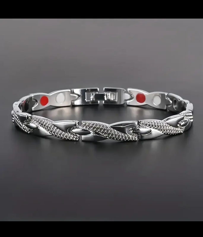 Цей аксесуар об'єднує в собі модний дизайн та корисні властивості. Магнітні поля сприяють поліпшенню кровообігу та загального самопочуття. 0,7 см товщина, 20 см довжина.
