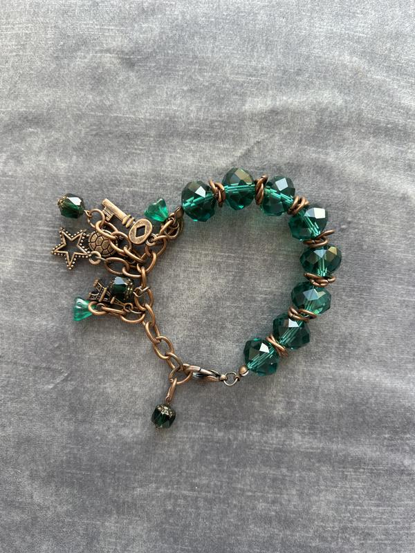 Стильный браслет ручной работы, из стеклянных бусин и металлических подвесок