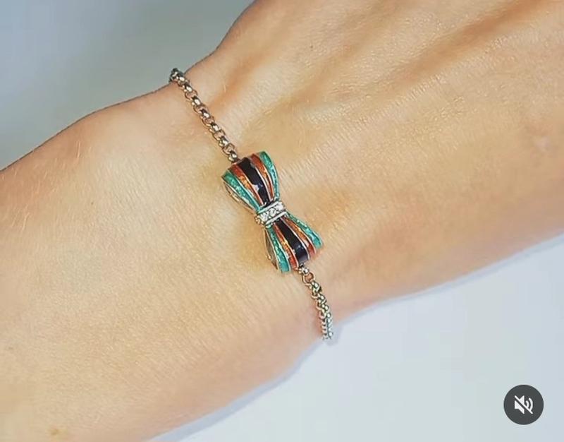 Родоване срібло 925 проби (колір білого золота, не темніє), виробництво Італія. Браслет з кольоровою емаллю та цирконіями. Вага 3,73 гр. Довжина 17 см. Усі прикраси з пробою та биркою. Абсолютно нові.
