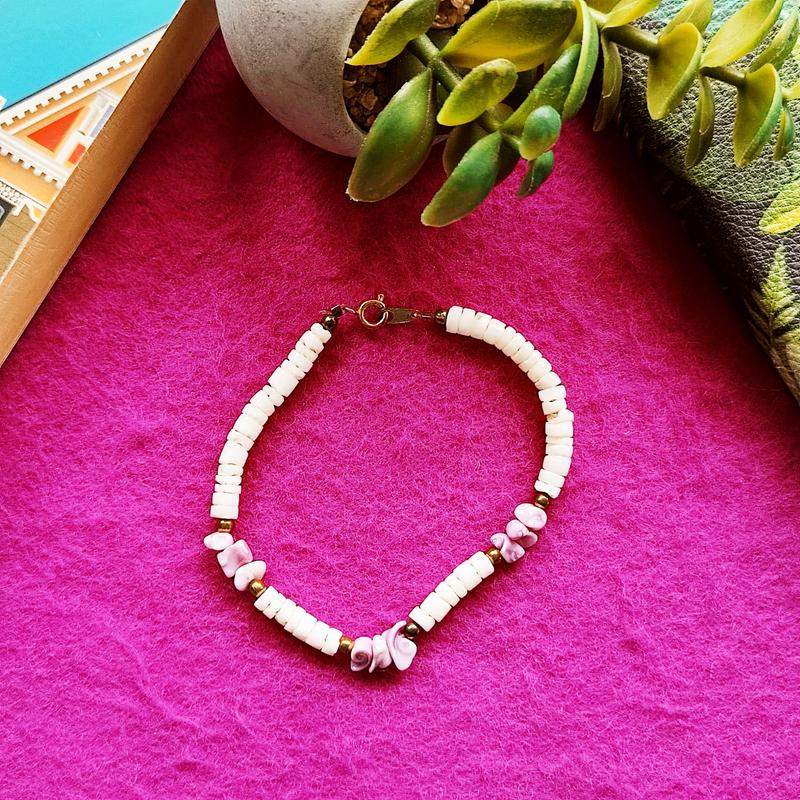 Браслет з мушлів - білій та бузковий кольори. Без маркування, стан добрий. Застібка - шпрингель, +/- сучасний. Довжина - 19,5 см. Доданий відеоогляд.