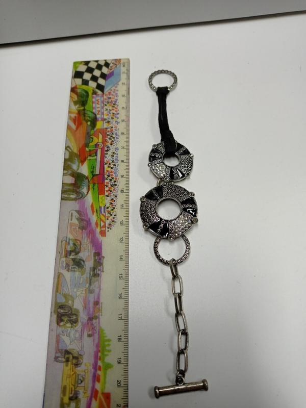 браслет комбінований з замшу,ланцюжка і великих візерунчастих кілець прикрашених емаллю та дрібними камінцями..прекрасний подарунок..