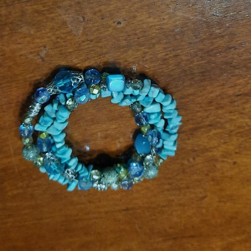 Браслет из натуральных камешков, в форме пружины, три оборота. Поэтому подойдет на любой размер