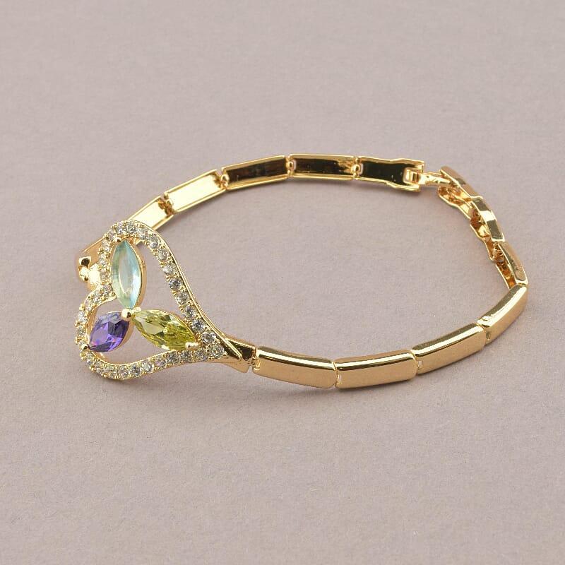 Артикул: 056288 Ширина: 24 мм. Бренд: XUPING Вага: 10,14 г. Довжина: 19 см. Камінь: Фіаніт Якість: Не темніє, не облазиє Матеріал: Медичний сплав Покриття: позолота 18к Тип замочка: Складной Колір: Різнобарвний Колір3: Золотий