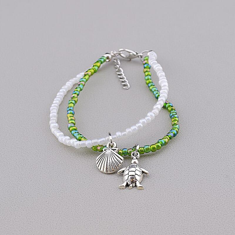 Артикул: 097066 Розмір кулона Бренд: SUNSTONES Тип замочка: Карабін (+4 см ланцюжок) Довжина: 19 см. Діаметр: 3 мм. Матеріал: Метал Якість: гарна Камінь: Бісер Колір: Білий Колір: Зелений Колір3: Срібний Вага: 7,09 г.