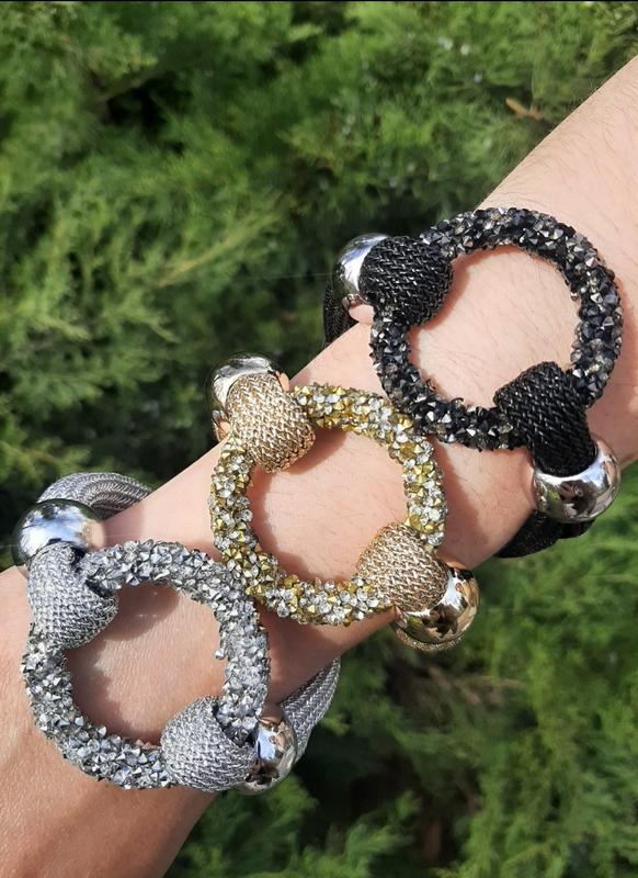 Кольори : золото , срібло та чорний . Застібка - магніт .
