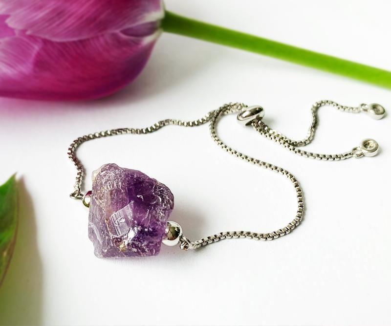 Природа — найкращий дизайнер! Стильний браслет з необробленого лавандового аметиста — 100% ексклюзив! Природні межі і нерівності каменю красиво заломлюють сонячні промені, додаючи виробу блиск і сяйво. Колірна гамма: блакитний, фіолетовий, бузковий Розмір браслета регулюється бігунком. Ланцюжок — покриття родієм Подарунок, вибраний з душею, особливо цінний! Прикраси ручної роботи завжди унікальні та ексклюзивні — прекрасний варіант подарунка для тих, хто шукає щось індивідуальне! Прикраси відправляємо в красивій подарунковій упаковці ) При оформленні замовлення, уточнюйте детальну інформацію про виріб. Ми з радістю відповімо на всі Ваші запитання. Важливо! Відтінок кольору може незначно відрізнятися від фотографії з-за різних налаштувань кольору моніторів! Додаткові характеристики: Колір: Фіолетовий Камені / вставки: Аметист Матеріал: Камінь