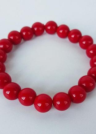 Браслет " Кораллы " на резинке Описание изделия: Бусины: кварц натуральный Вид: имитация кораллов Цвет бусин: красный Цена: Диаметр бусин: 8мм - 716 грн Диаметр бусин: 10мм - 828 грн Размер изделия: подбирается индивидуально. Красный цвет ассоциируется с огнем, страстями и кровью. Самой жизнью. Он способен наделить своего обладателя большим количеством энергии, необходимой для решения различного рода задач. У носителя возникает непреодолимое желание действовать, появляется уверенность в себе и в своих силах.