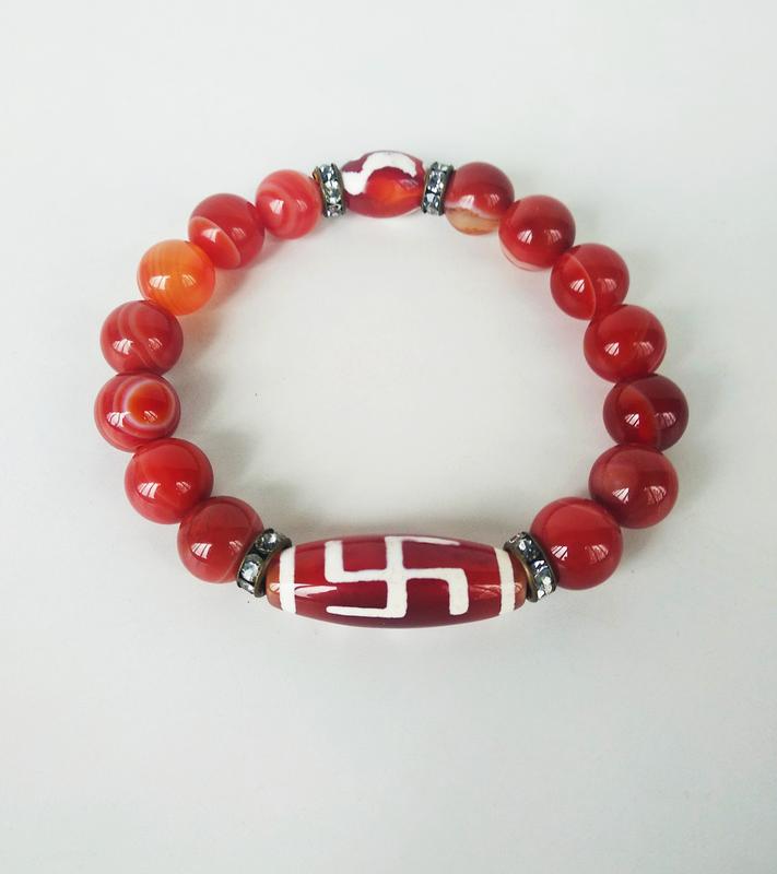 Браслет - талісман з тибетськими бусинами дзі "свастика" і " золотий ключ "з сердоліку