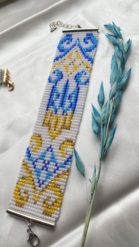 Браслет з бісеру , виконаний в техніці ручне ткацтво . Довжина 16см +5 см ланцюжок-подовжувач