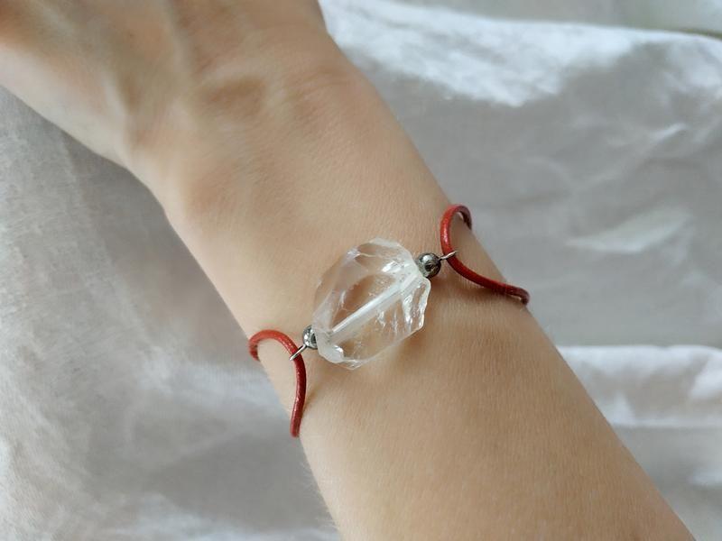 Браслет з шкіряного шнура з гірським кришталем "червона нитка"
