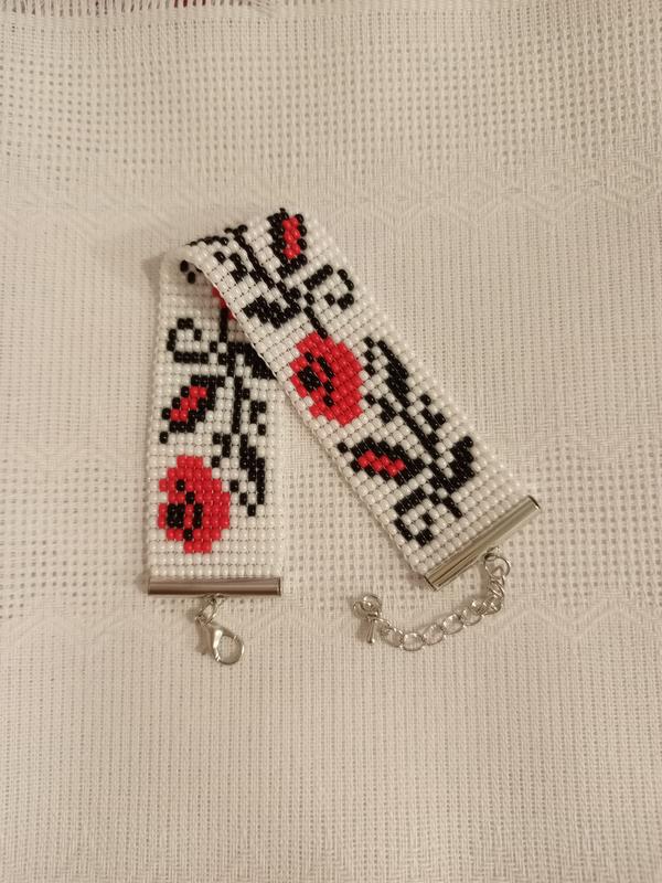 Ручна робота. Браслет виготовлений з чеського бісеру. Довжина виробу 15см плюс ланцюжок 6см Браслет из бисера