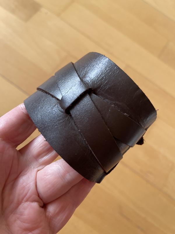 Шкіряний браслет темно - коричневого кольору. Ширина 6 см, мінімальний обʼєм 21 см, регулюється максимально до 23,5 см. Новий, без дефектів.