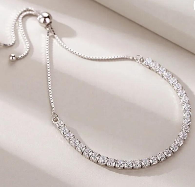 Круглый регулируемый браслет из кубического циркония 4 мм, серебристый