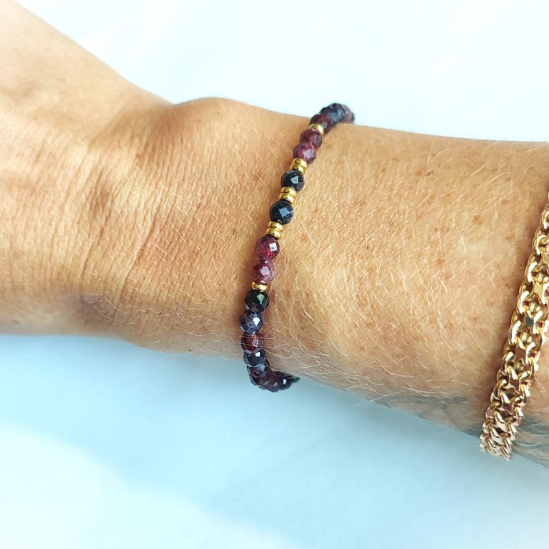 Стильний браслет з натурального гранату зібраний на ювелірний тросик з фурнітурою з медсплаву (крім обжимних бусинок) зі зручним затяжним замочком. Гранат розміром 4 мм Розмір підкоректую під ваш ;)