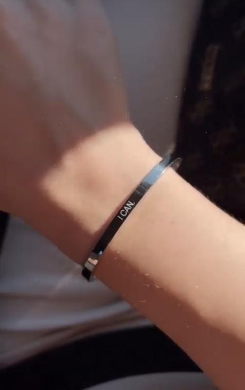 Стильний браслет із високоякісної неіржавкої сталі з гравіюванням I can Ширина браслета 6 мм, має глянсове покриття. Підходить на ширину зап'ястя від 14 до 16,5 см. Не темніє від води