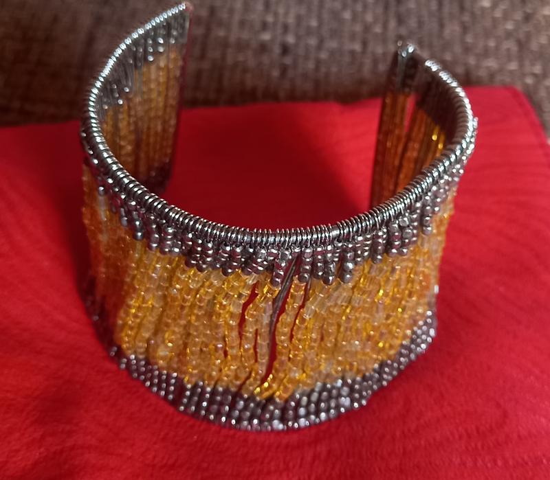 Виразний, красивий браслет - манжета.. Бісер високої якості. Ручна робота. Об'єм - 15- 17 см. Ширина - 5 см Стан - дуже хороший.. Вінтаж -70- ті. Індія.