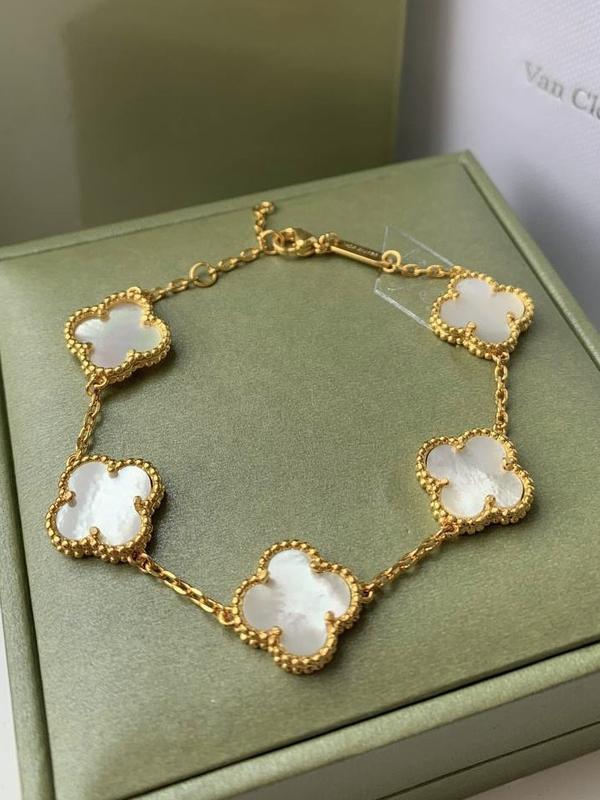 Елегантні та стильні прикраси стиль Ванкліф, конюшина. Браслет на 1 або 5 елементів. На всіх браслетах є гравіювання та проба. Браслет можна придбати комплектами з кільцями, сережками та підвісками. Сережки є гвоздики або англійський замок. Сережки є на 1, 2, 3 або 4 елементи. Усі прикраси можна придбати в подарунковому пакованні.
