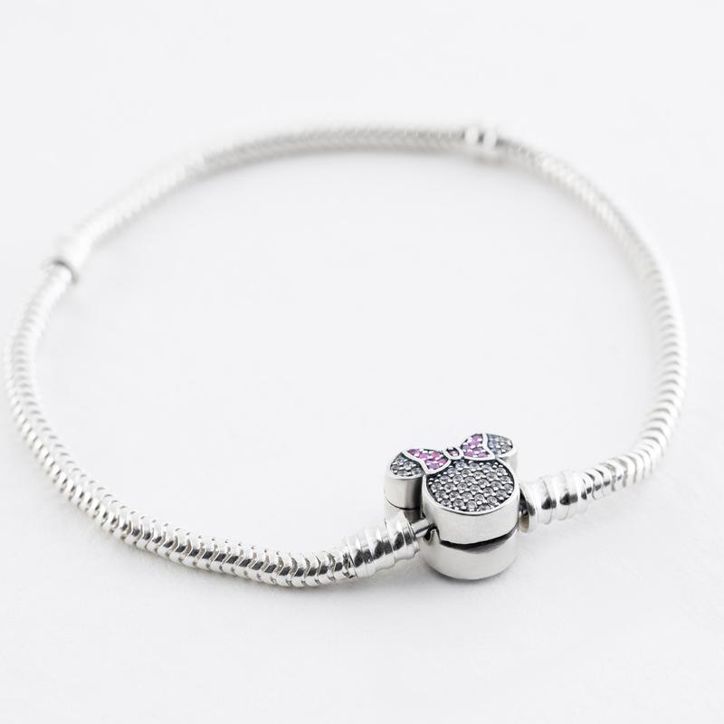 Серебряный браслет с белыми и розовыми фианитами, размер 19 см x 0,3 см, вес: 10.0 г