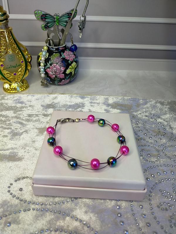 Браслет з важкими пофарбованими намистинами. можливо металеві. Довжина-21см.