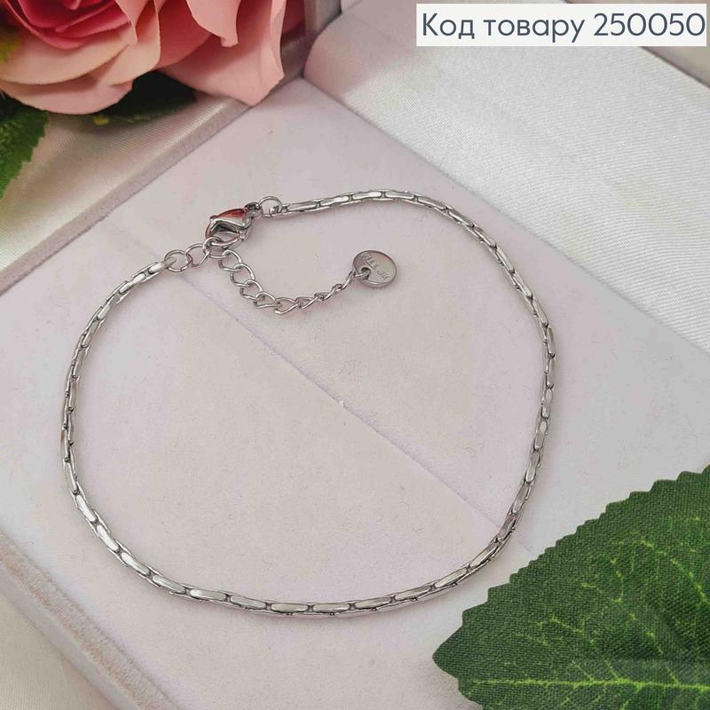 Браслет срібного кольору, ширина 2мм, довжина 19+3см, сталь stainless steel