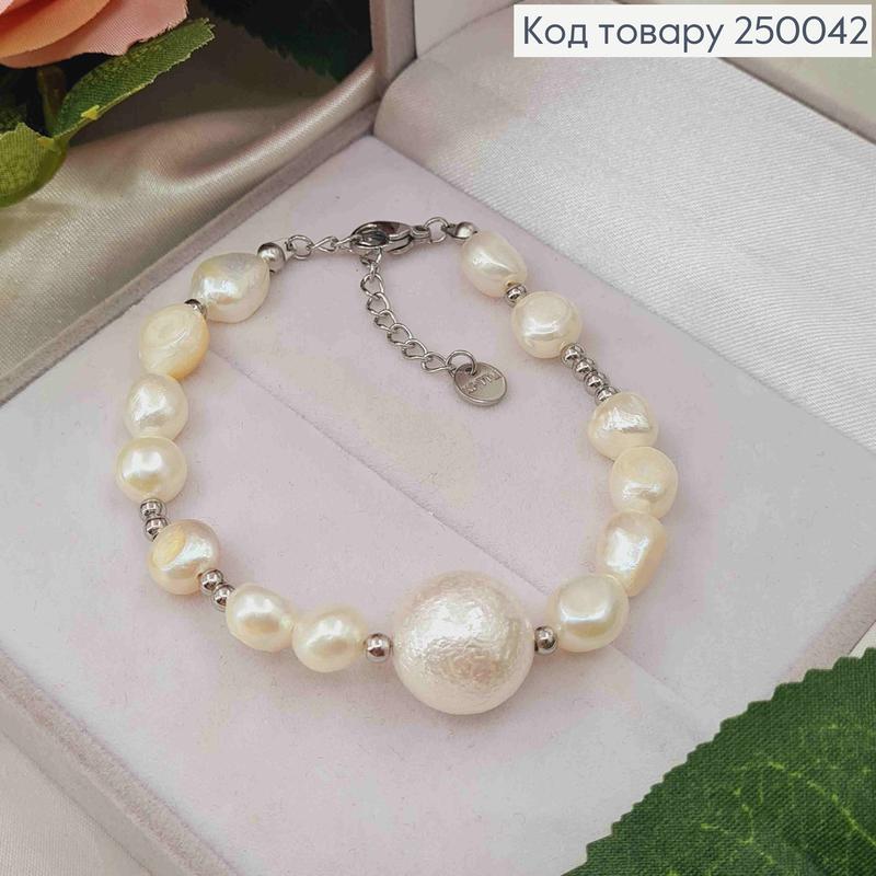 Браслет срібного кольору, з бусинок різного розміру і форми, 17+3,5см, сталь stainless ste...