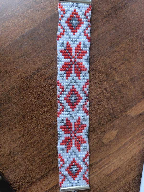 Продам браслет из чешского бисера ручной работы.На заказ других цветов,принта.С застежкой.Корегирование длины под ваши параметры.Мозная пояс из бисера (на атласной ленте). Дочка 9 лет производитель.